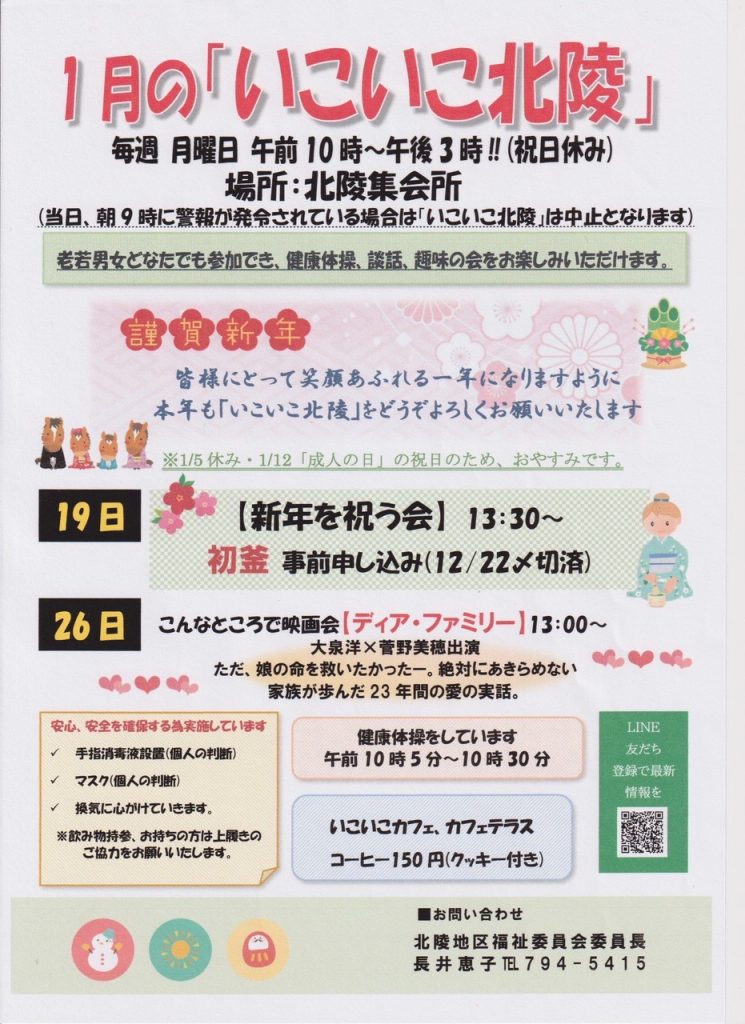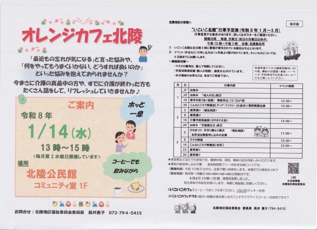 令和8年1月の「いこいこ北陵」と「オレンジカフェ北陵」開催のご案内