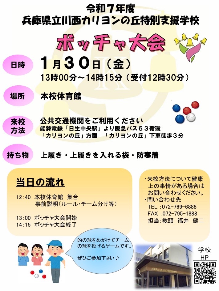 「兵庫県立川西カリヨンの丘特別支援学校 ボッチャ大会」開催案内